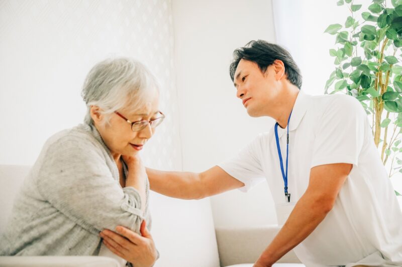 訪問リハビリでは、理学療法士が目の前でケア方法を説明し、家族も実際に手を動かしながら覚えられます。