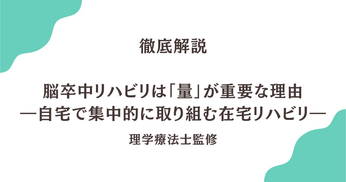 脳卒中リハビリは「量」が重要な理由―自宅で集中的に取り組む在宅リハビリ―